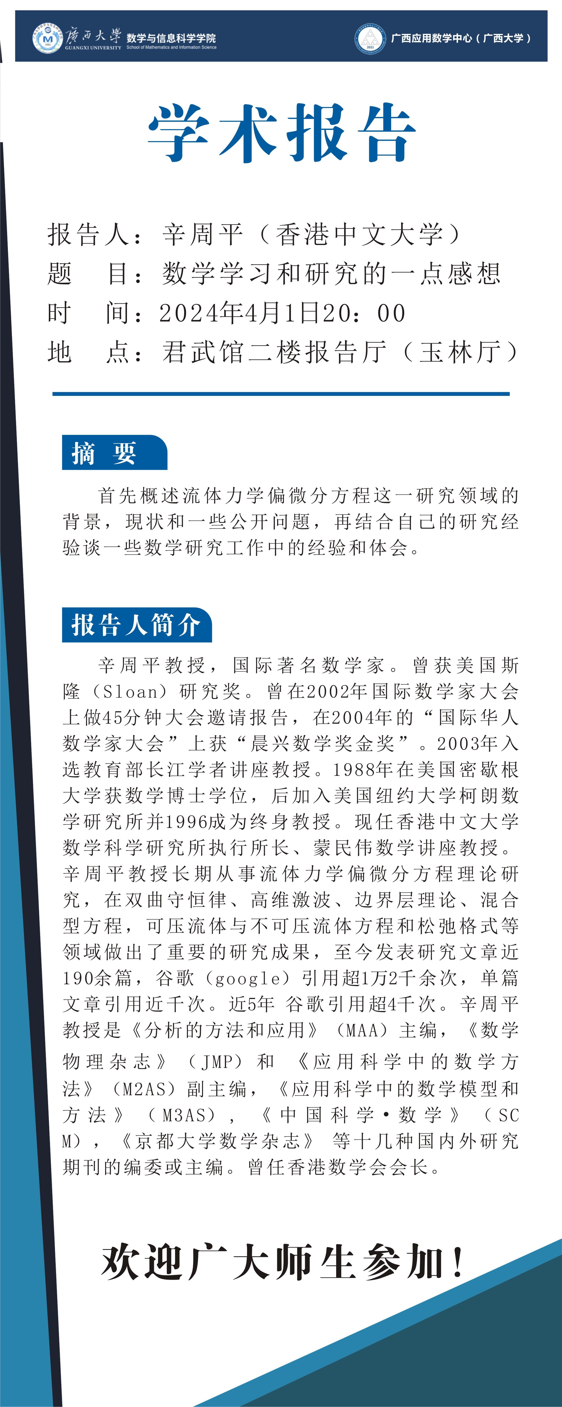 学术报告:数学学习和研究的一点感想