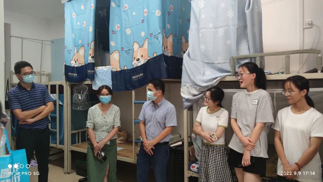 “来自哪里”、“是否能够适应天气”、“疫情期间,注意保护自己”......每到一个宿舍,院领导都亲切地对新生的到来表示热烈欢迎,亲切询问相关情况,解答新生在学习生活上的困惑,为刚踏入大学的新生们带来了家的温暖。
