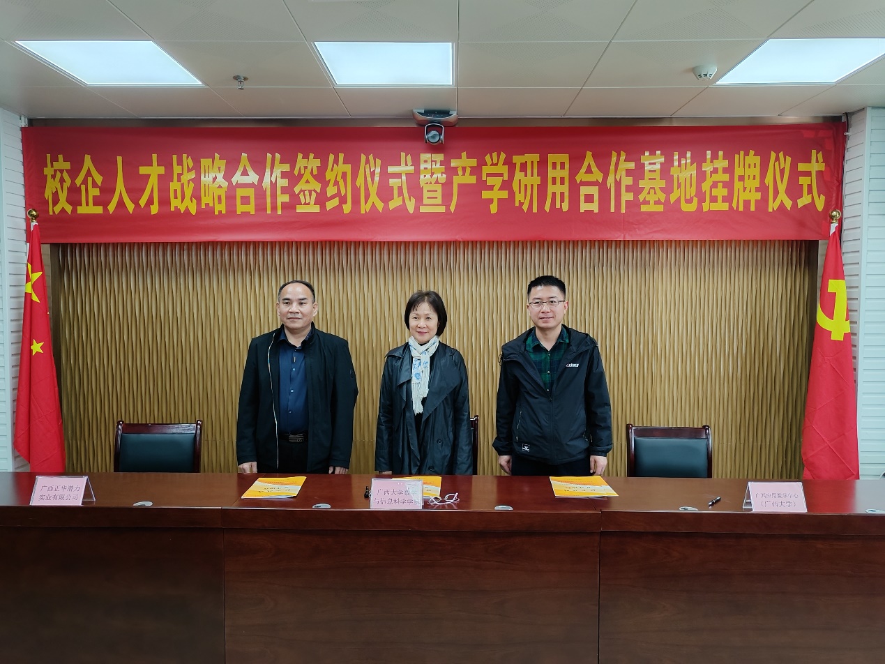数信学院、广西应用数学中心(广西大学)与两家企业举行校企人才战略合作签约仪式暨产学研用合作基地揭牌仪式
