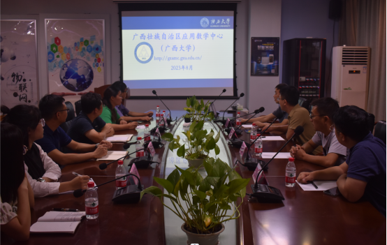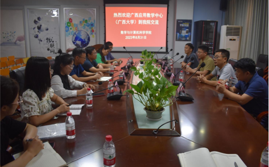 2023年8月31日上午,学院副院长、广西应用数学中心(广西大学)常务副主任袁功林等中心团队成员前往广西科技师范学院数学与计算机科学学院洽谈交流,受到数学与计算机科学学院院长周优军、副院长曾箫潇、蒋林利,以及相关骨干教师等的热情接待。