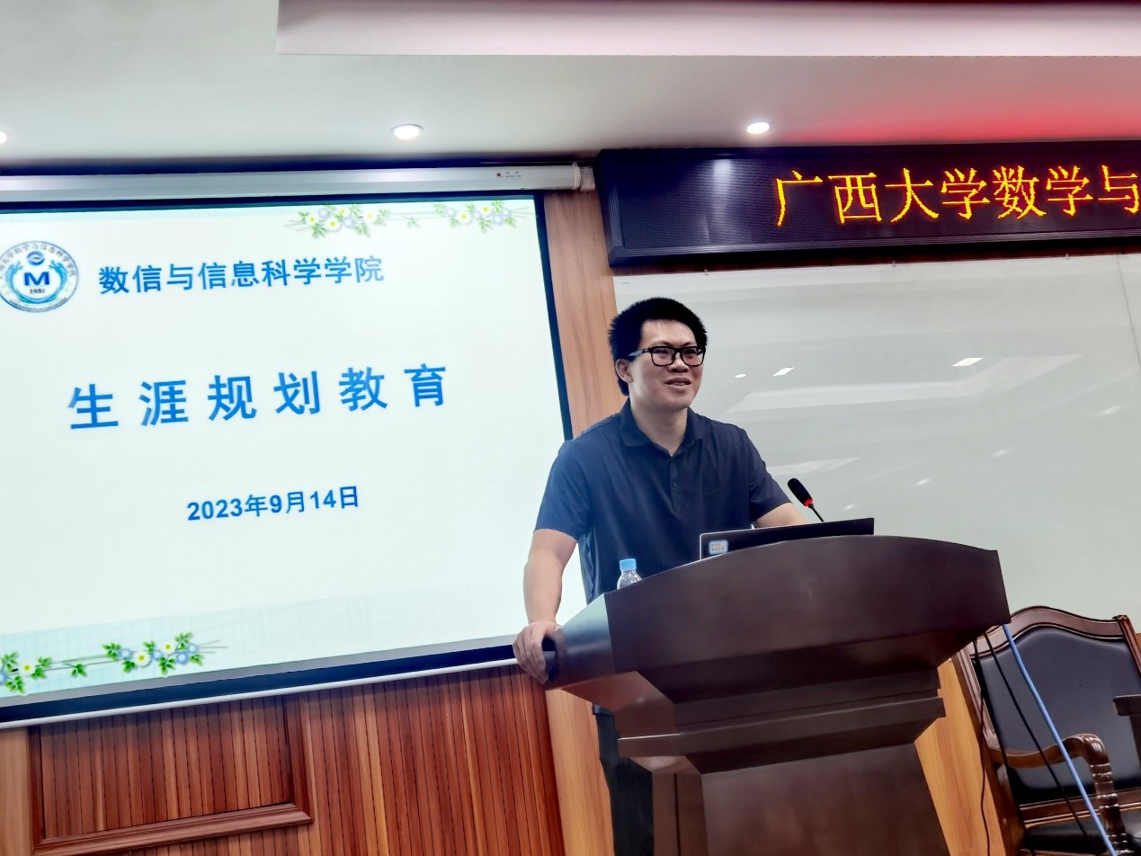 专任教师于毅从如何选择导师、与导师的相处之道、选择适合自己的学习科研之路等方面为全体2023级研究生做了生涯规划教育,同时结合自己的学习、科研经历,强调了建立学术热情和追求知识的重要性。
