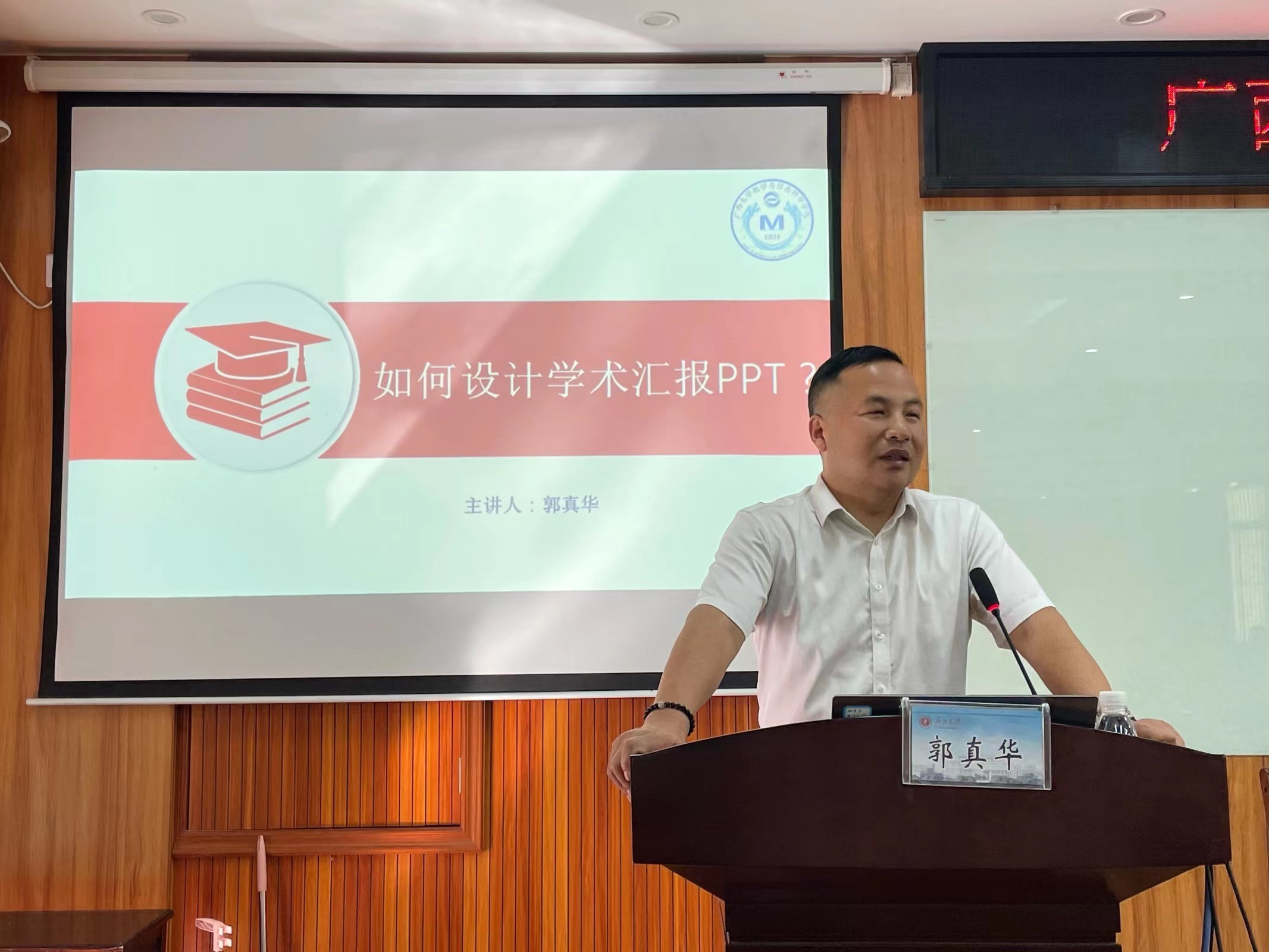 研究生在学术汇报方面的盲点和疑虑,郭真华院长着重从“学术交流的目的”“学术报告礼仪”“PPT的结构与汇报重点”等层面讲授了如何设计清晰度高、概括性强、重点突出的高质量学术报告PPT。最后,他鼓励全体研究生要敢于善于探索学科领域的前沿问题,在发现问题和解决问题中提升自身的科研能力和综合素质,力争做学科发展的攀登者。