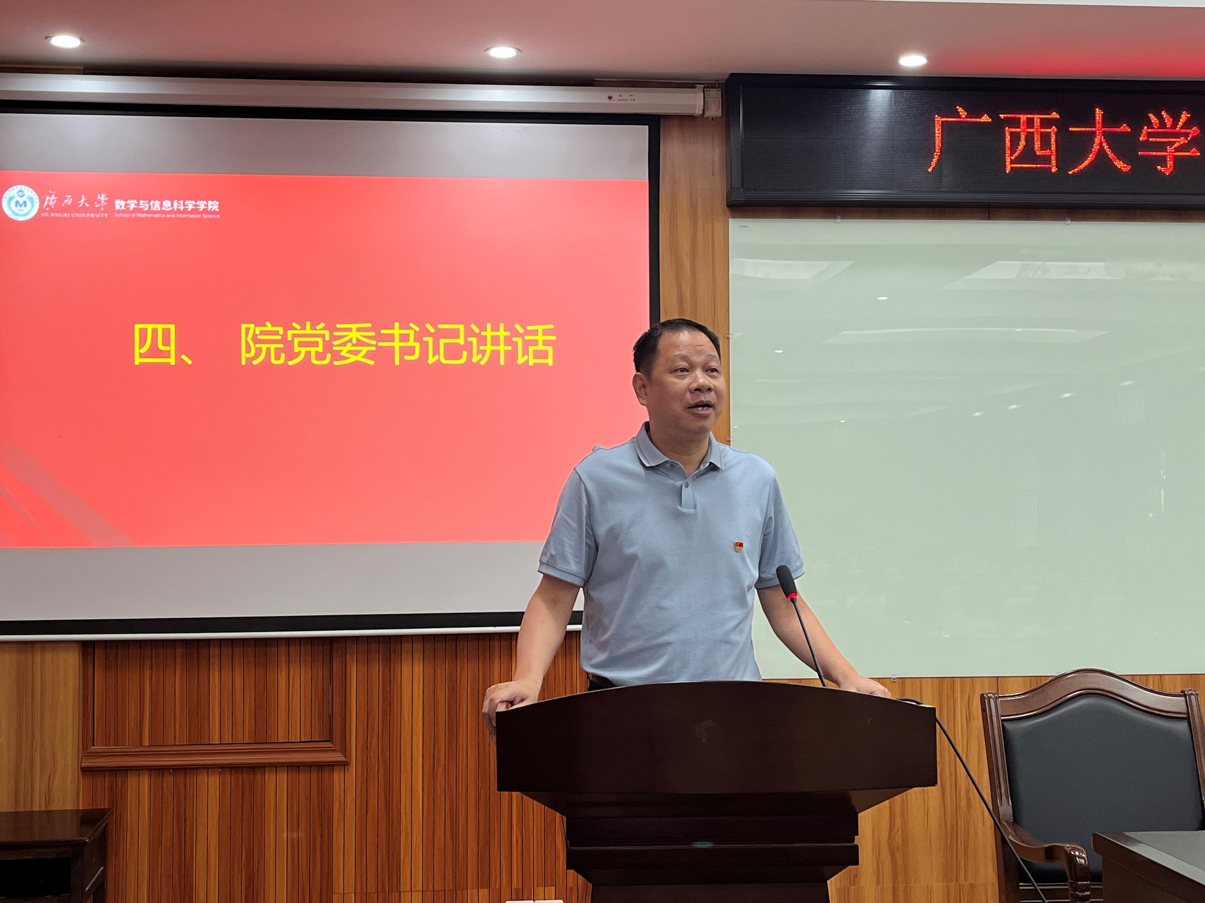 学院党委书记覃宪儒作开班讲话。他首先对本次培训班的开班表示祝贺,对全体培训班学员表示欢迎。他指出,大学生的健康成长关系党和人民事业后继有人,党校是同学们认识党、了解党、加入党的主要途径,更是同学们铸牢理想信念、锤炼政治品格、守住思想防线、练就过硬本领的思政课堂。他希望全体学员认真对待本次培训,严格遵守培训纪律,在铸牢对党忠诚和发扬斗争精神上下功夫。最后,覃宪儒书记预祝本期校分党校培训工作圆满成功!