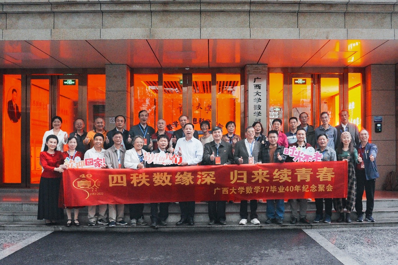 党委书记覃宪儒带领班子成员及校友工作相关人员,热烈欢迎数学77级校友重返母校,并隆重举行毕业40年座谈会。
