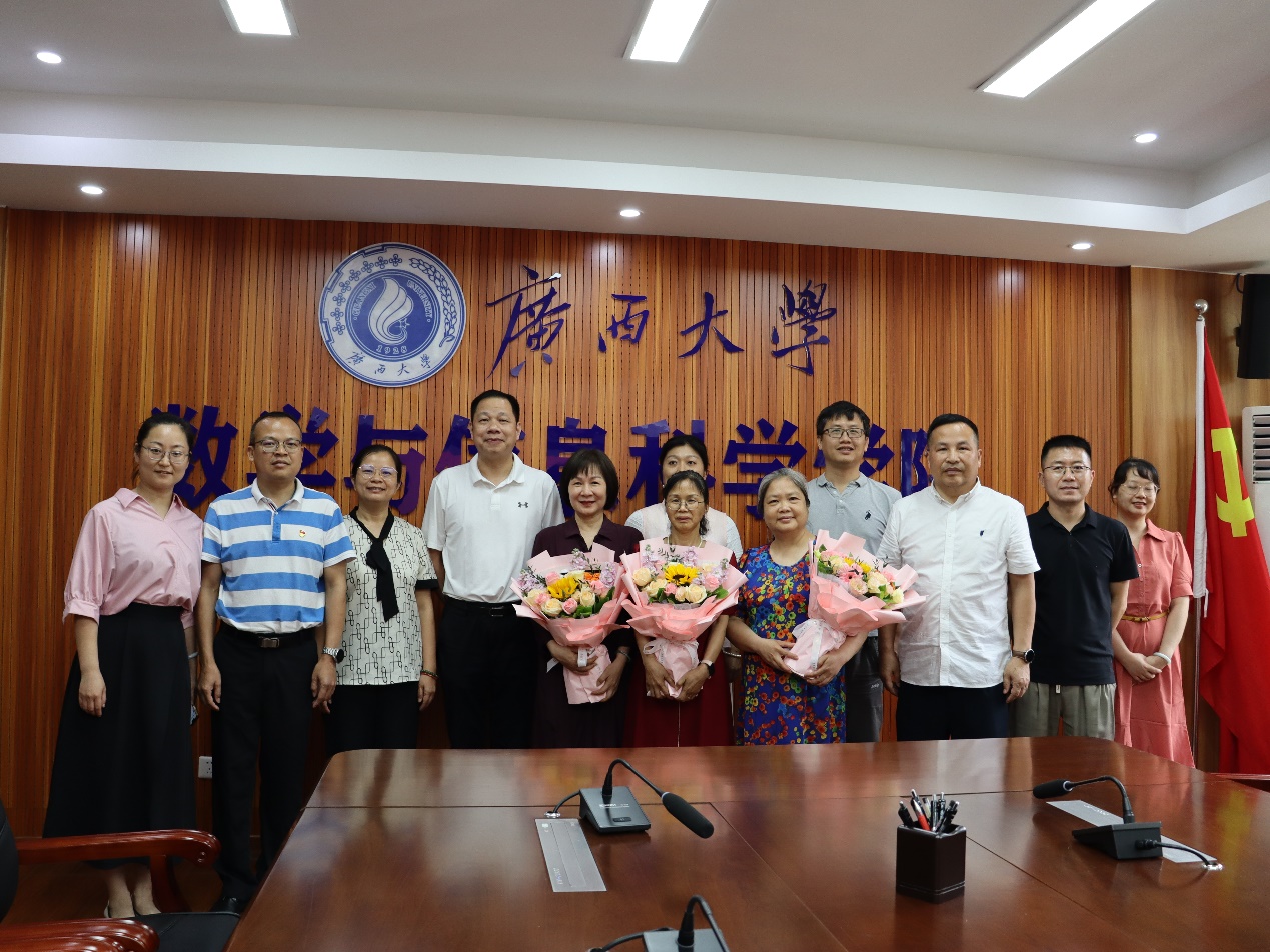 覃宪儒代表学院党委对荣退教师们为数信学院各项事业发展的辛勤耕耘和无私奉献表示感谢。他指出,荣退教师在过去的几十年里,始终站在立德树人、教书育人、服务师生、奉献社会的前沿,以职业为荣,以立德树人为己任,淡泊名利,培根铸魂,点亮了学生成长成才之路;潜心教学科研,倾心管理服务,不忘初心、牢记使命,为学院的发展打下了坚实基础。“莫道桑榆晚,为霞尚满天”,也希望退休教师们一如既往地关心支持学校发展,积极建言献策,发挥余热,贡献智慧。