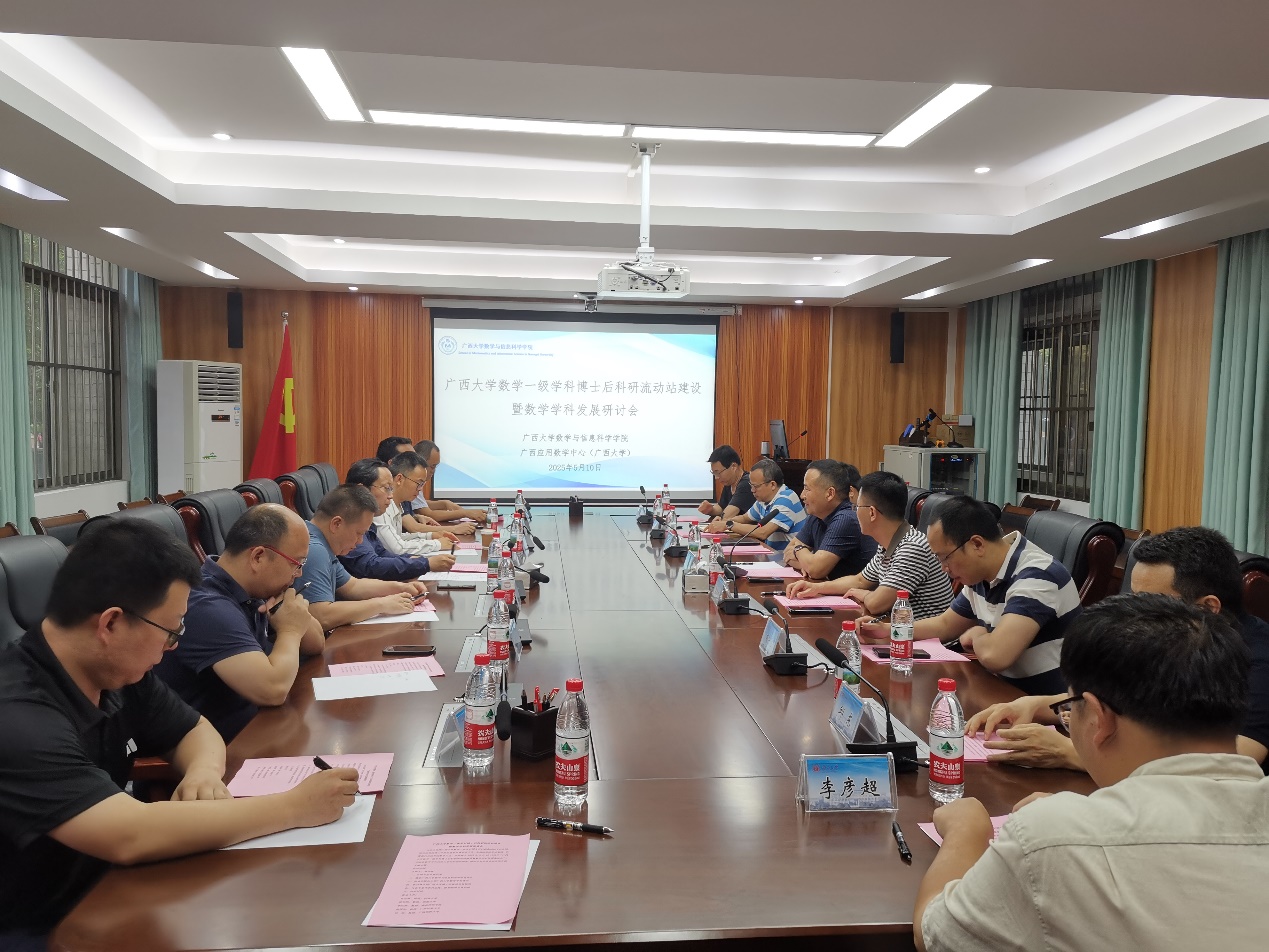 5月10日下午,由广西大学数学和信息科学学院、广西应用数学中心(广西大学)联合主办的“广西大学数学一级学科博士后科研流动站建设暨数学学科发展研讨会”在广西大学顺利召开。广西大学数学和信息科学学院博士后流动站、广西应用数学中心(广西大学)领导班子成员,骨干教师,在站博士后代表,以及来自区内外多所高校的专家学者齐聚一堂,共话学科建设与人才培养经验。会议由广西大学数学博士后科研流动站站长袁功林主持。
