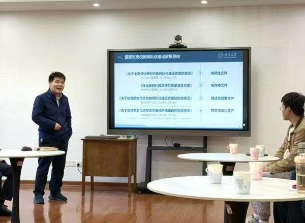 的全体青年教师参加活动。本次活动还特别邀请了我校教师教学发展中心专职副主任胡立坤到场与青年教师交流,为他们作“构建多维支撑体系,激发教师发展活力:高校教师专业成长的系统规划与发展路径”专题讲座。
