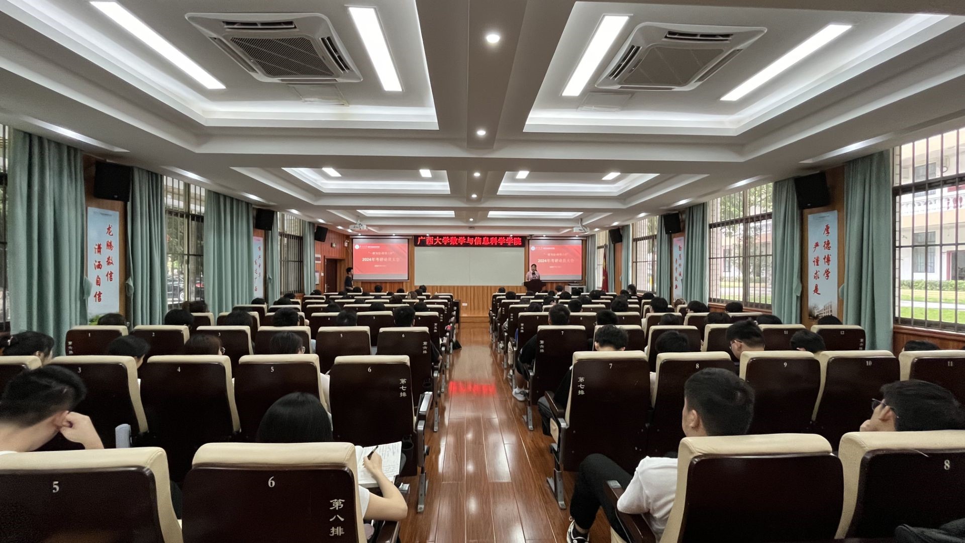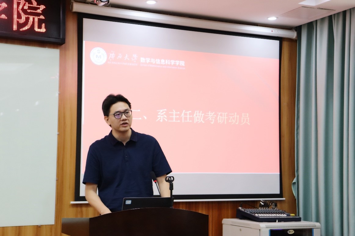 陈良对考研政策进行了详细解读,帮助同学们更好地了解考研的相关要求和流程。他还结合当前考研形势,分析了考研的难点和重点,就如何选择院校和专业提出了建议。何家维从研究方向结合职业生涯发展前景做了分析,总结了历年学生考研的录取情况,强调了继续读研提升的重要性,鼓励同学们明确读研目标,制订可行的复习计划,注重基础知识积累,提升解题能力,提高考研成功率。张幸说明了信息与计算科学专业应用性比较强的特点与优势,并就该专业在研究生阶段可拓展延伸的方向做了详细介绍,激发了同学们的学习兴趣与报考信心。刘楚箫强调复习阶段应注重巩固基础,提高对知识点更高层次的把握和运用,要善于归纳总结,形成自己熟悉的解题体系,从而在实考中面对陌生的试题时能把握主动,避免走入为做题而做题的误区。