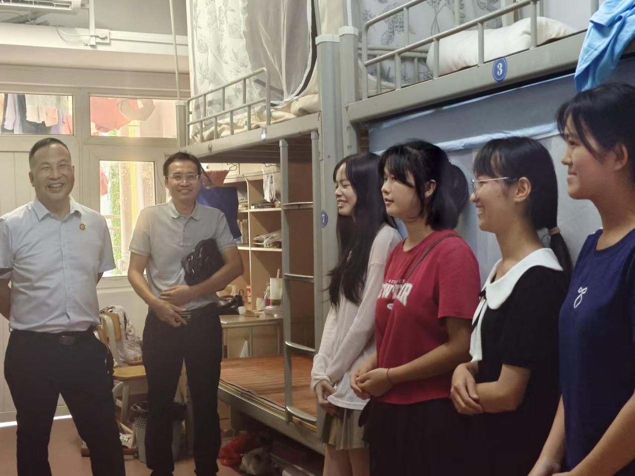 “同学们来自哪里?”“环境还适应吗?”“饭菜合口味吗?”“目前有什么困难吗”一句句暖人心间的话语,是老师们对同学们的热情欢迎和深深牵挂。在学生宿舍,郭真华详细询问了同学们的来校情况,仔细查看了新生们的宿舍环境,叮嘱同学们遵守宿舍管理规定,尽早制定学业规划,明确学习目标,尽快适应大学生活,加强与老师和同学之间的沟通交流,德智体美劳全面发展,让家人放心。