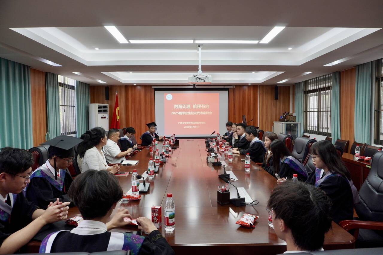 在2025届毕业生校友代表座谈会上,院长郭真华首先祝贺同学们顺利毕业,将作为又一批广西大学数信学院优秀校友开启新的征程,创造新的成就,希望2025届毕业生校友们向澳门永利集团官方博彩平台