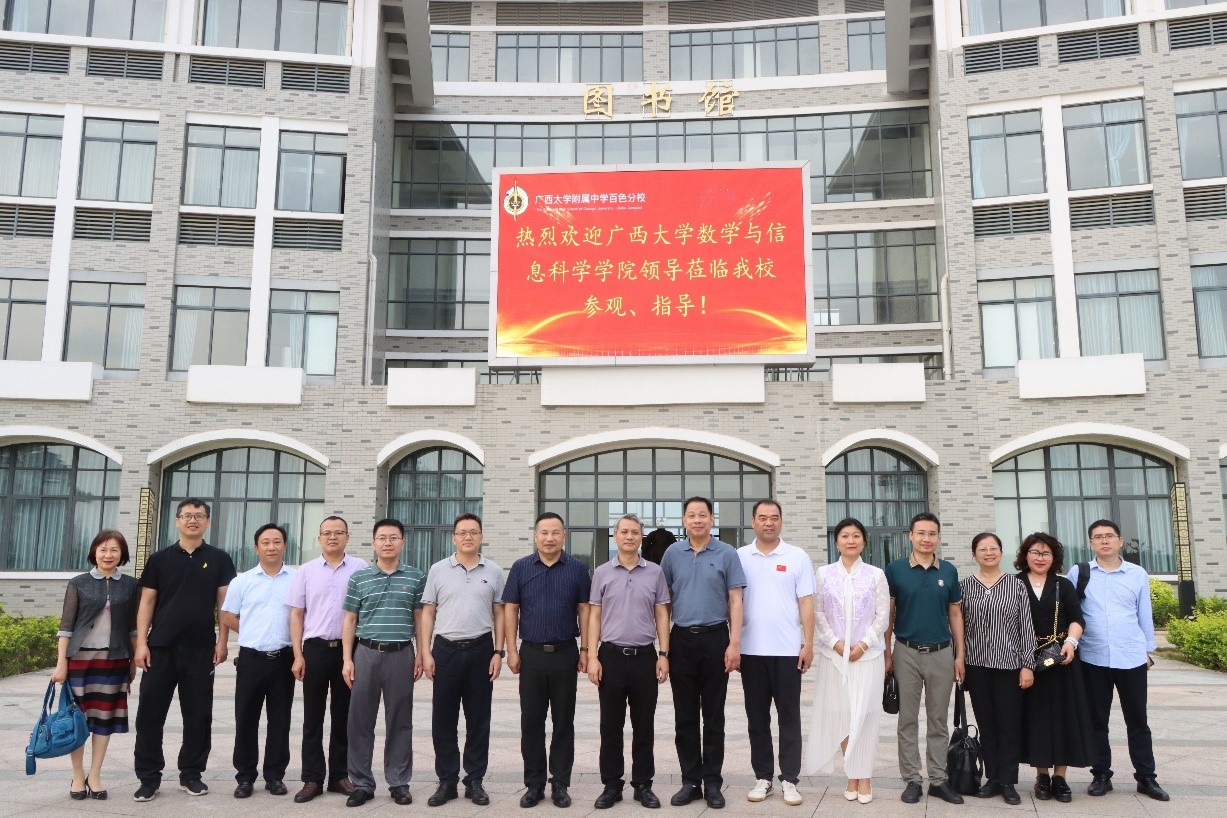 为深入学习宣传贯彻习近平新时代中国特色社会主义思想和党的二十大精神,宣传数学基础教育改革理念,开展基础数学研究和数学人才培养等方面的交流合作,3月27日数信学院党委书记覃宪儒、院长郭真华带队赴广西大学附属中学百色分校开展交流合作活动。广西大学附属中学百色分校校长李良刚及学校领导班子成员参加了本次活动。
