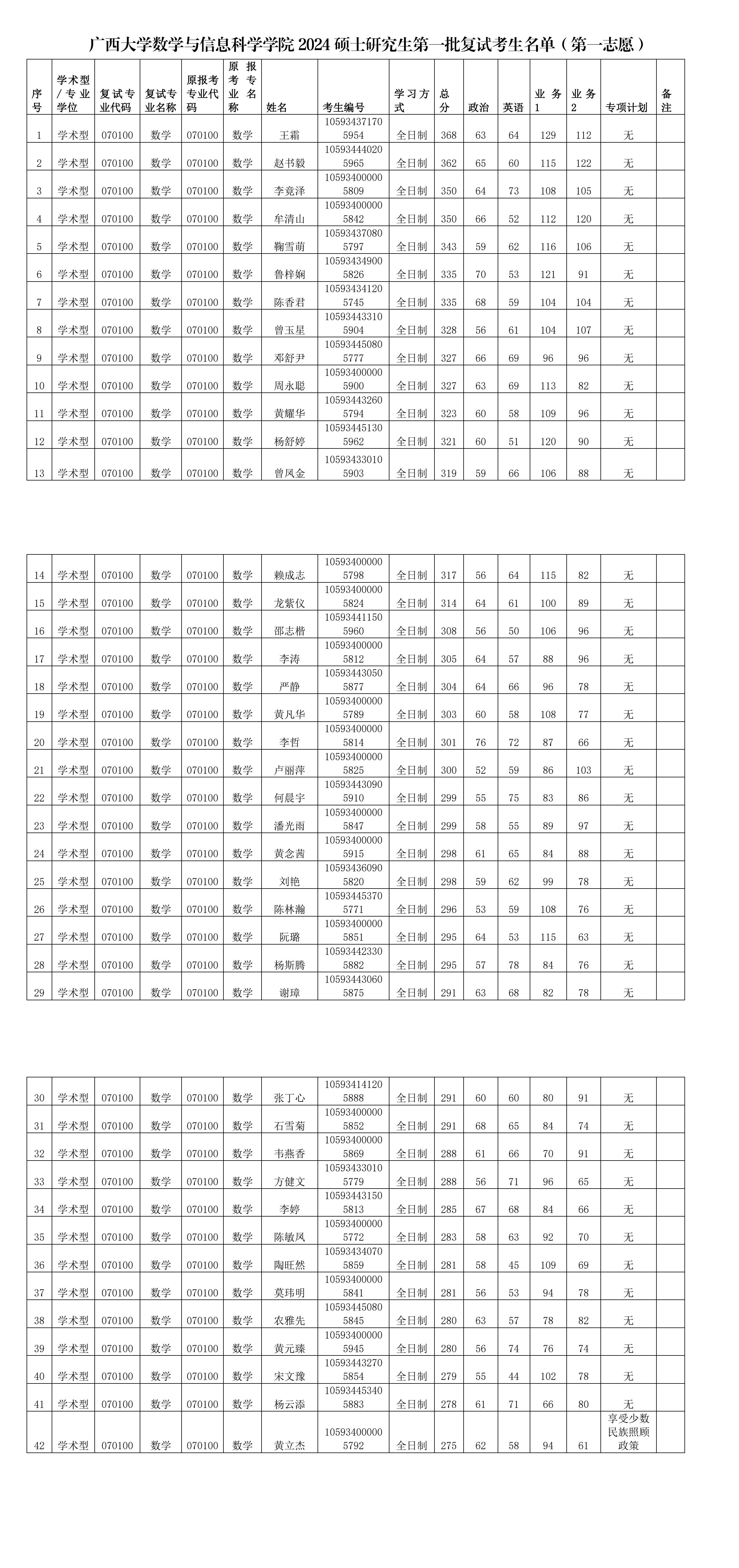 澳门永利集团官方博彩平台 2024硕士研究生第一批复试考生名单(第一志愿)