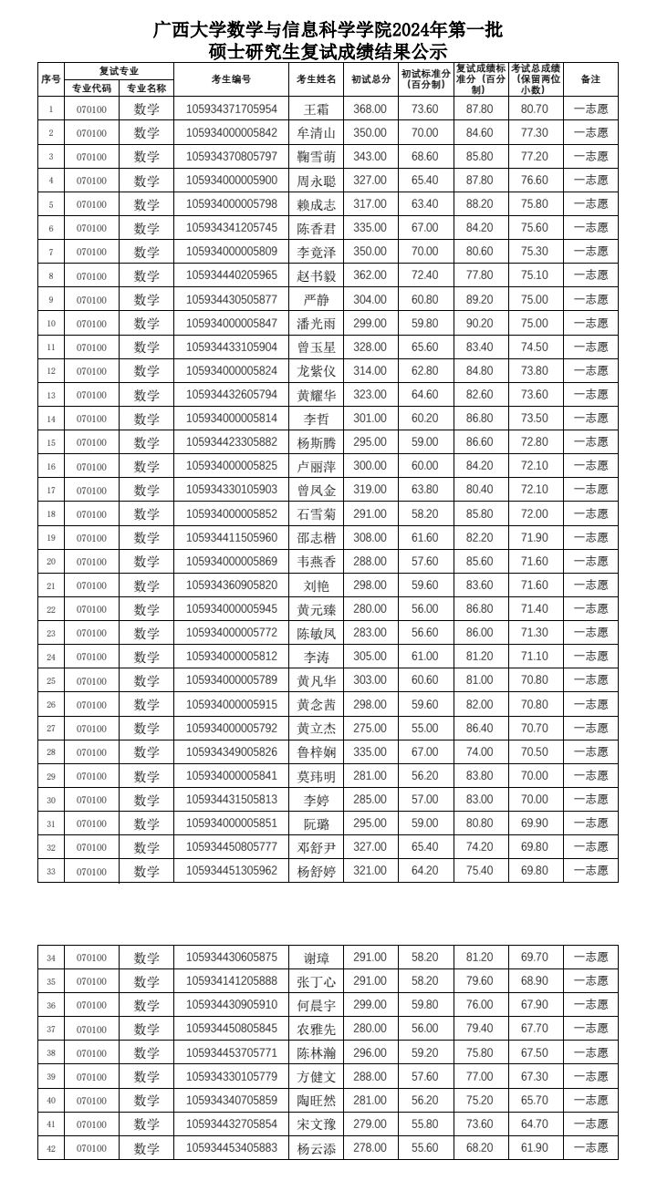 澳门永利集团官方博彩平台 2024硕士研究生第一批复试考生名单(第一志愿)