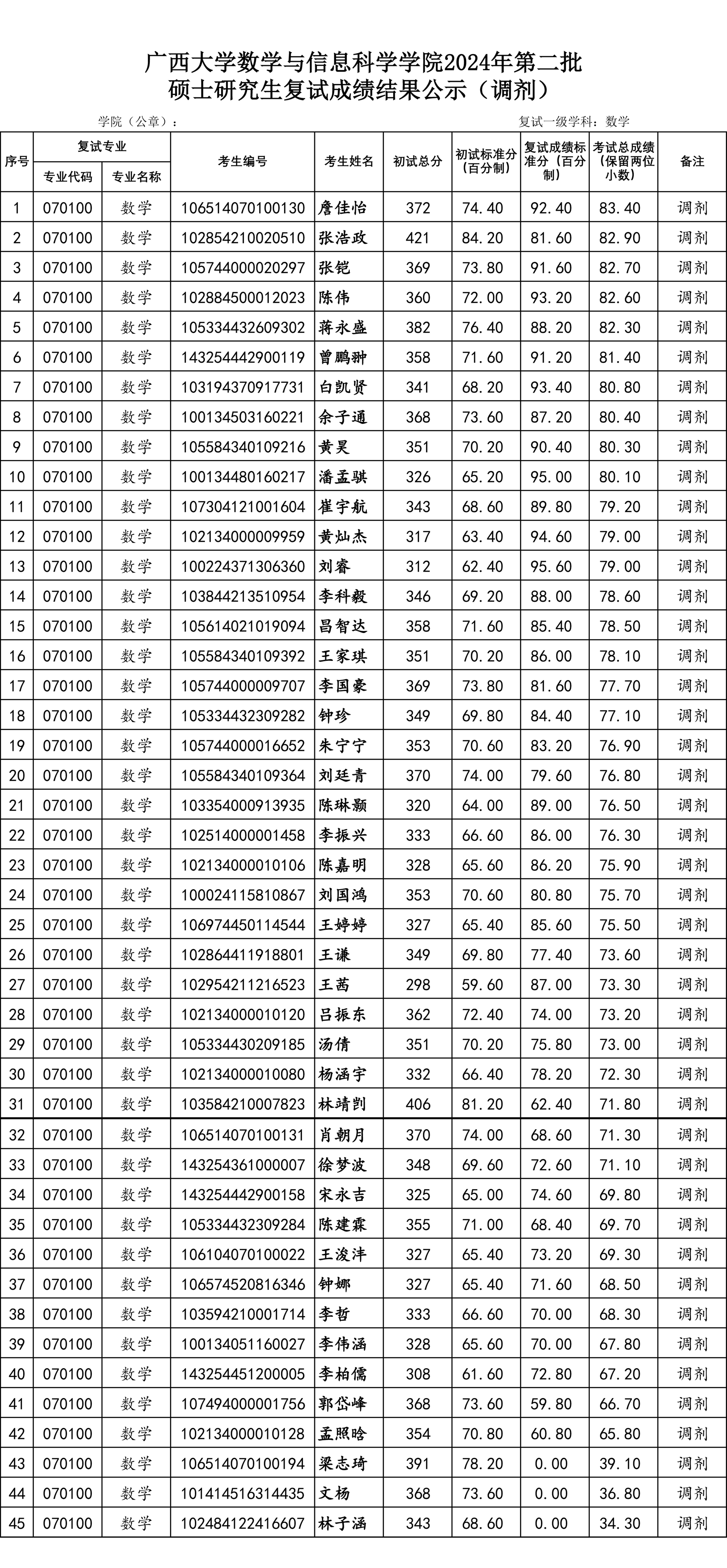 澳门永利集团官方博彩平台 2024年第二批硕士研究生复试名单公示(调剂考生)